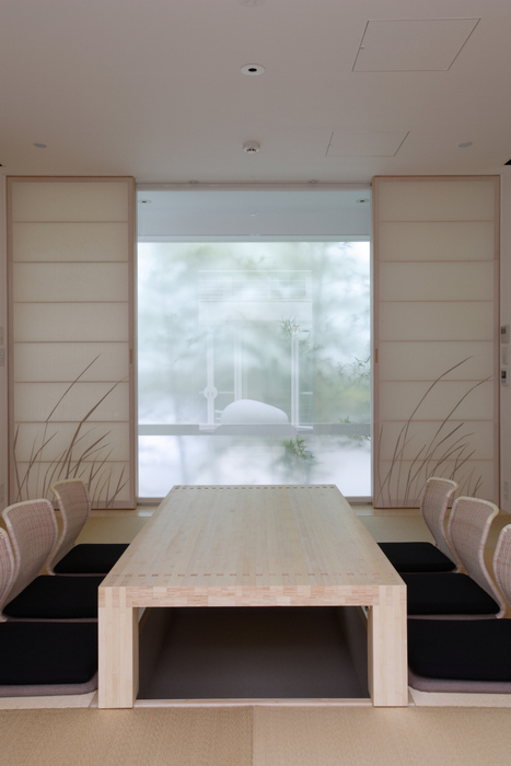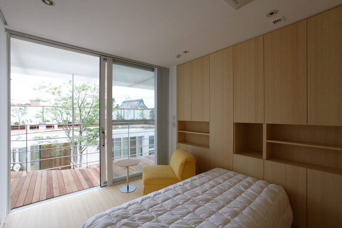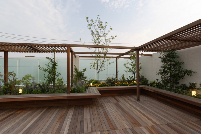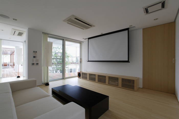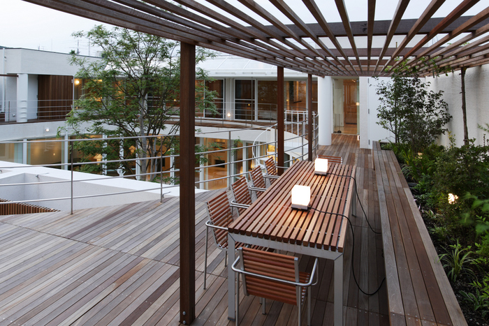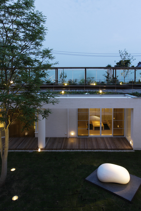 この家でも日本の伝統的家屋から学べる「暮らしの知恵」、例えば外と中のインターフェイスである縁側、坪庭、庇、通風、常緑と落葉の使い分け、屋上緑化を積極的に取り入れている。