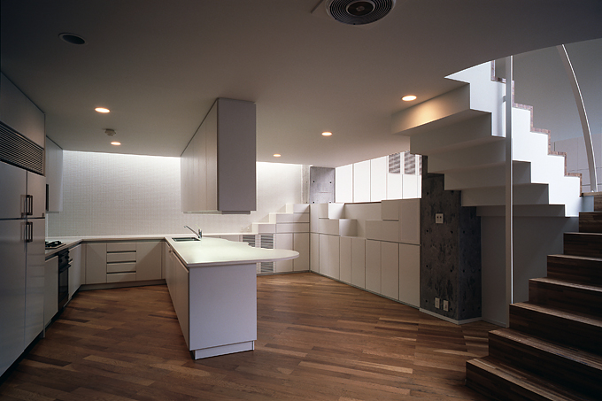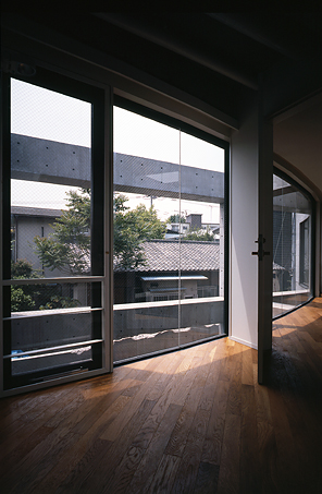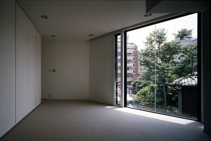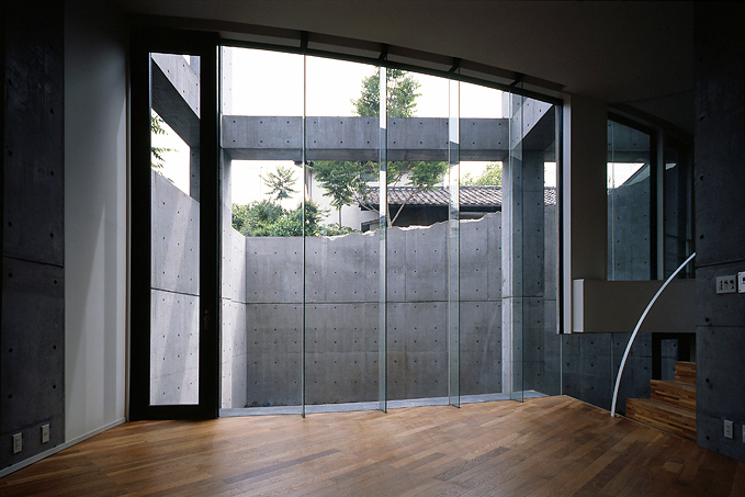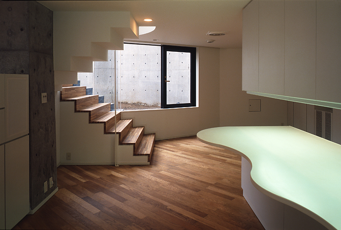 南側に大きく掘り下げたパティオによって、地下に位置する各部屋に有効な採光と開放的で適度なプライバシーが確保された心地よい内部と外部との中間的な空間を生み出し、周辺環境には求められない都市住宅の弱点を自らの敷地内に取り込むことで解決しています。