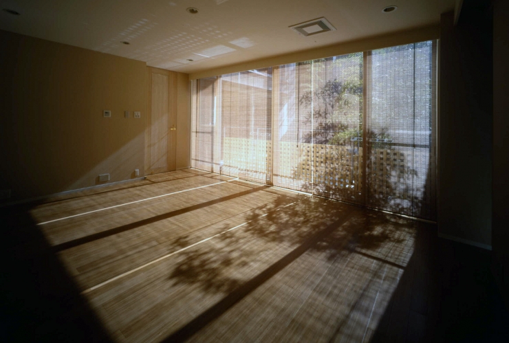 建物正面のガラス、室内に掛かるすだれ、テラスの木格子、あらゆる場所に多様種なスクリーンが設けられており、プライバシーを確保しつつも、建物全体の演出が見事になされています。また、「健康住宅」をテーマに有害な物を一切使わない工夫もしていただきました。非常に気持ちの良い空間が出来あがったと思います。 施主様